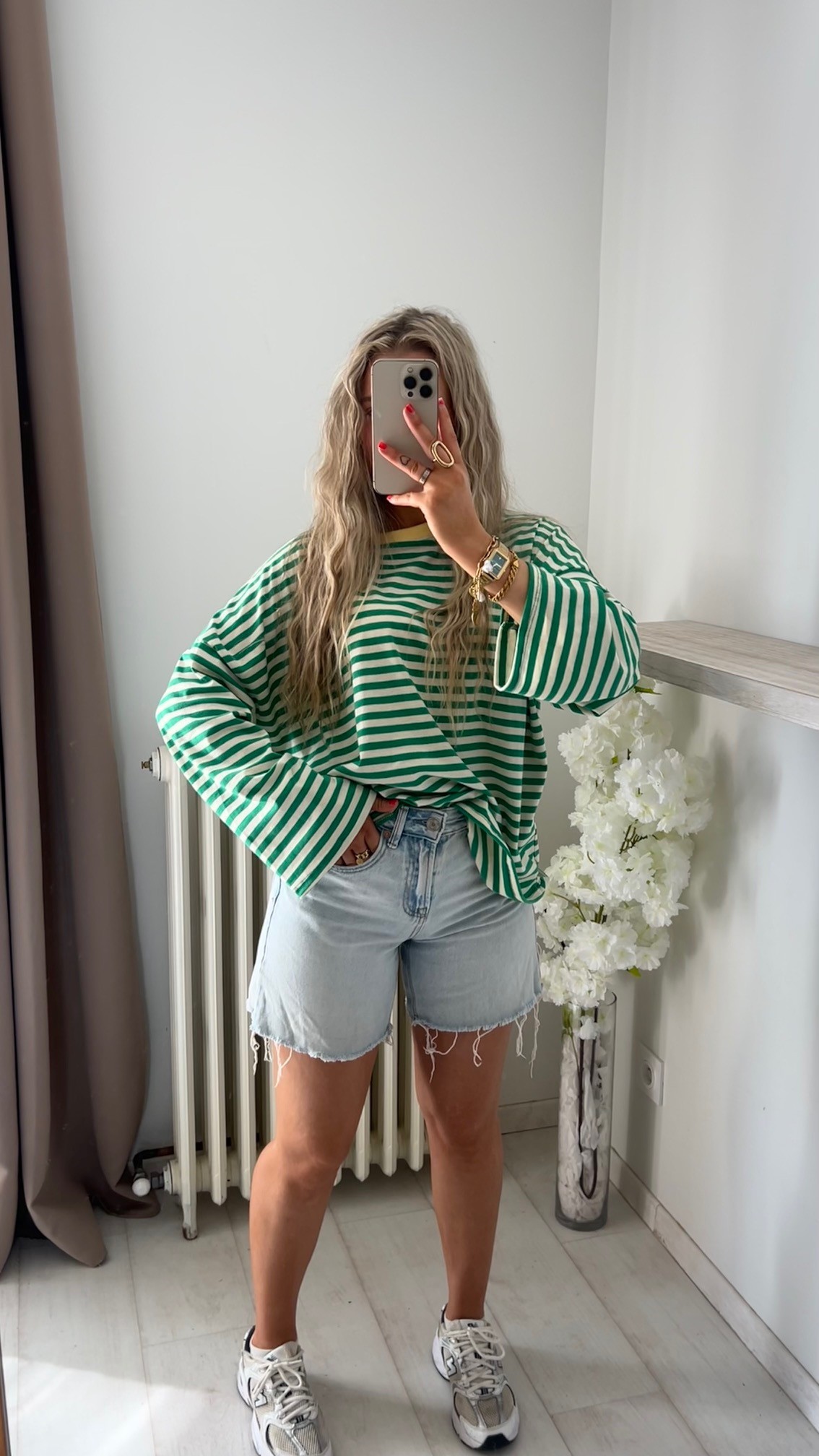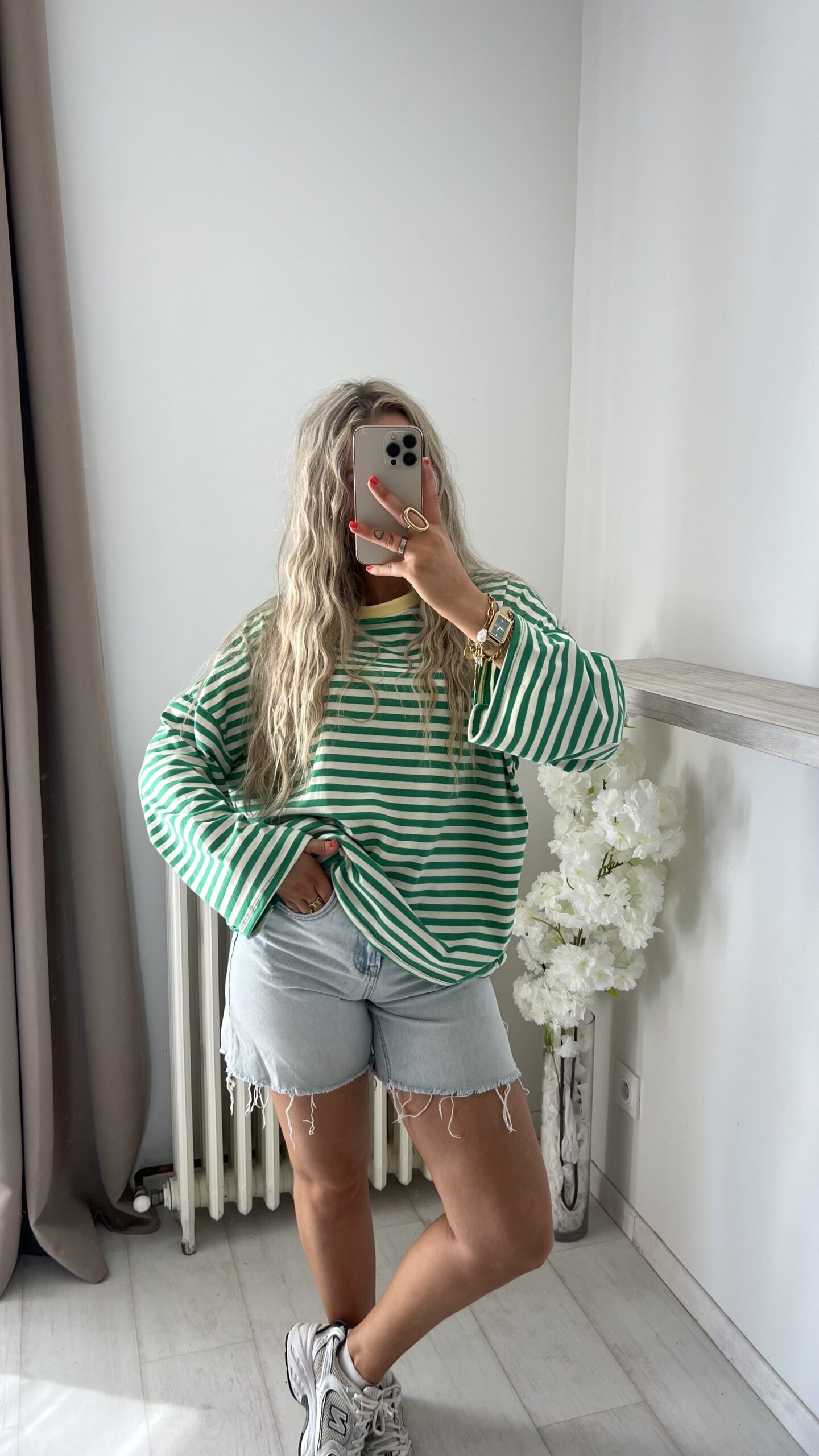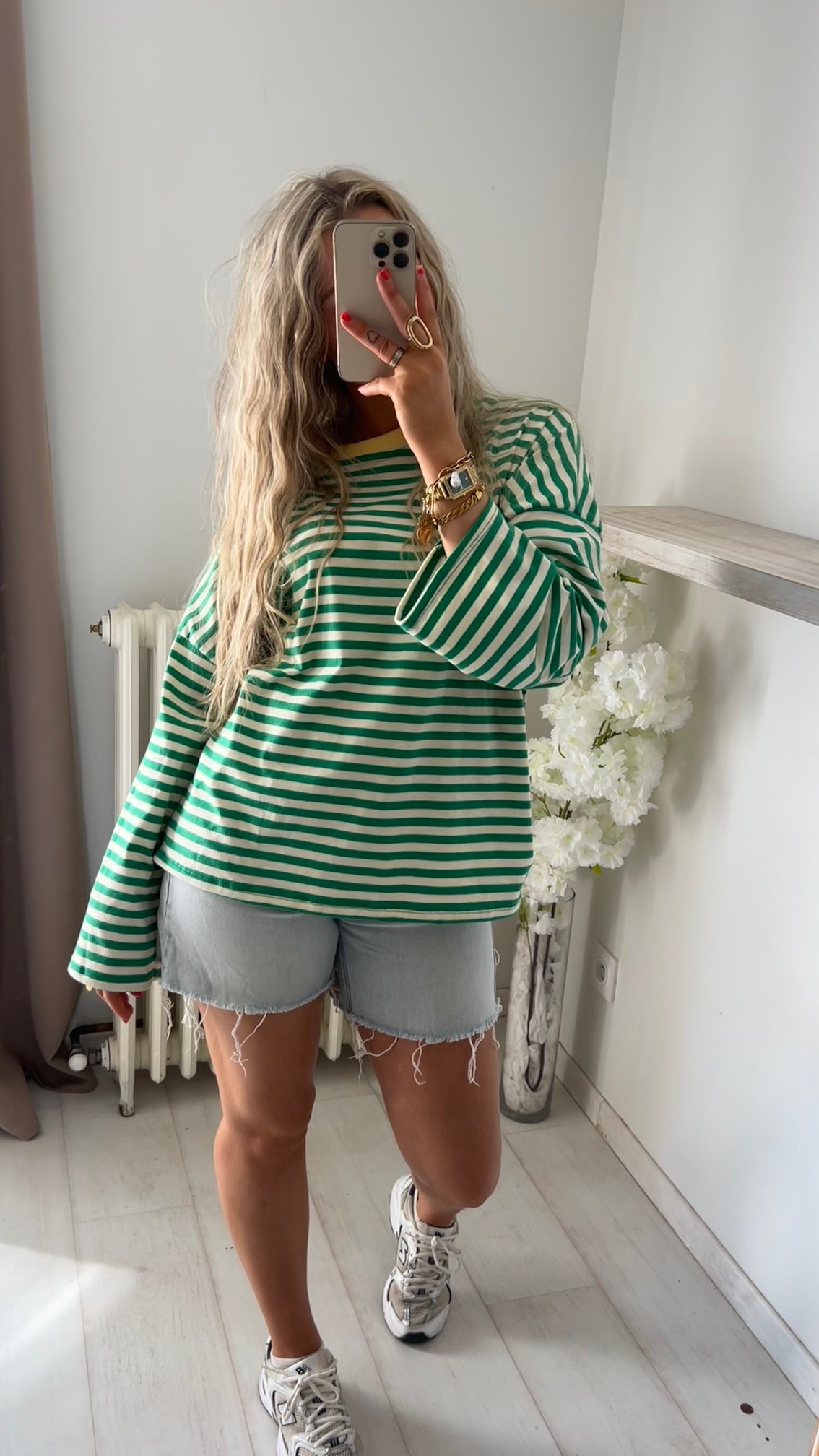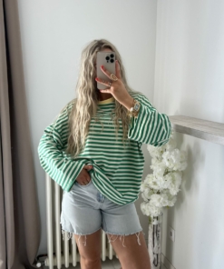 •Top à rayures vert blanc