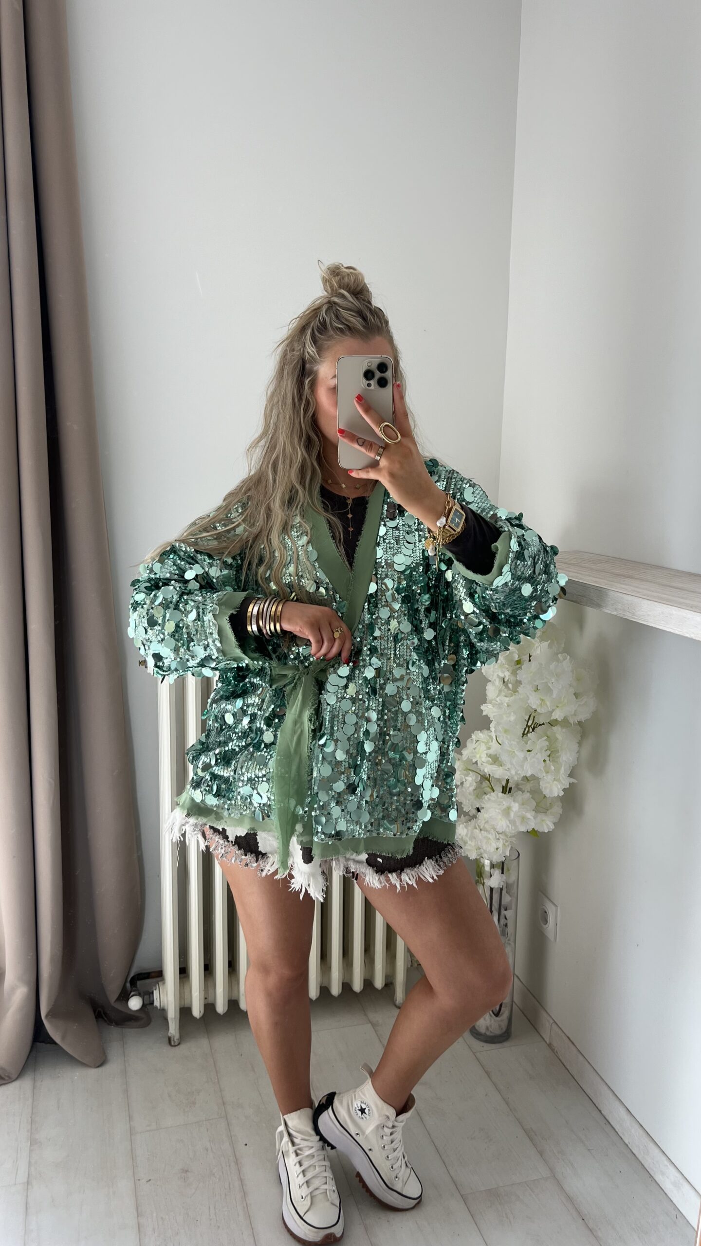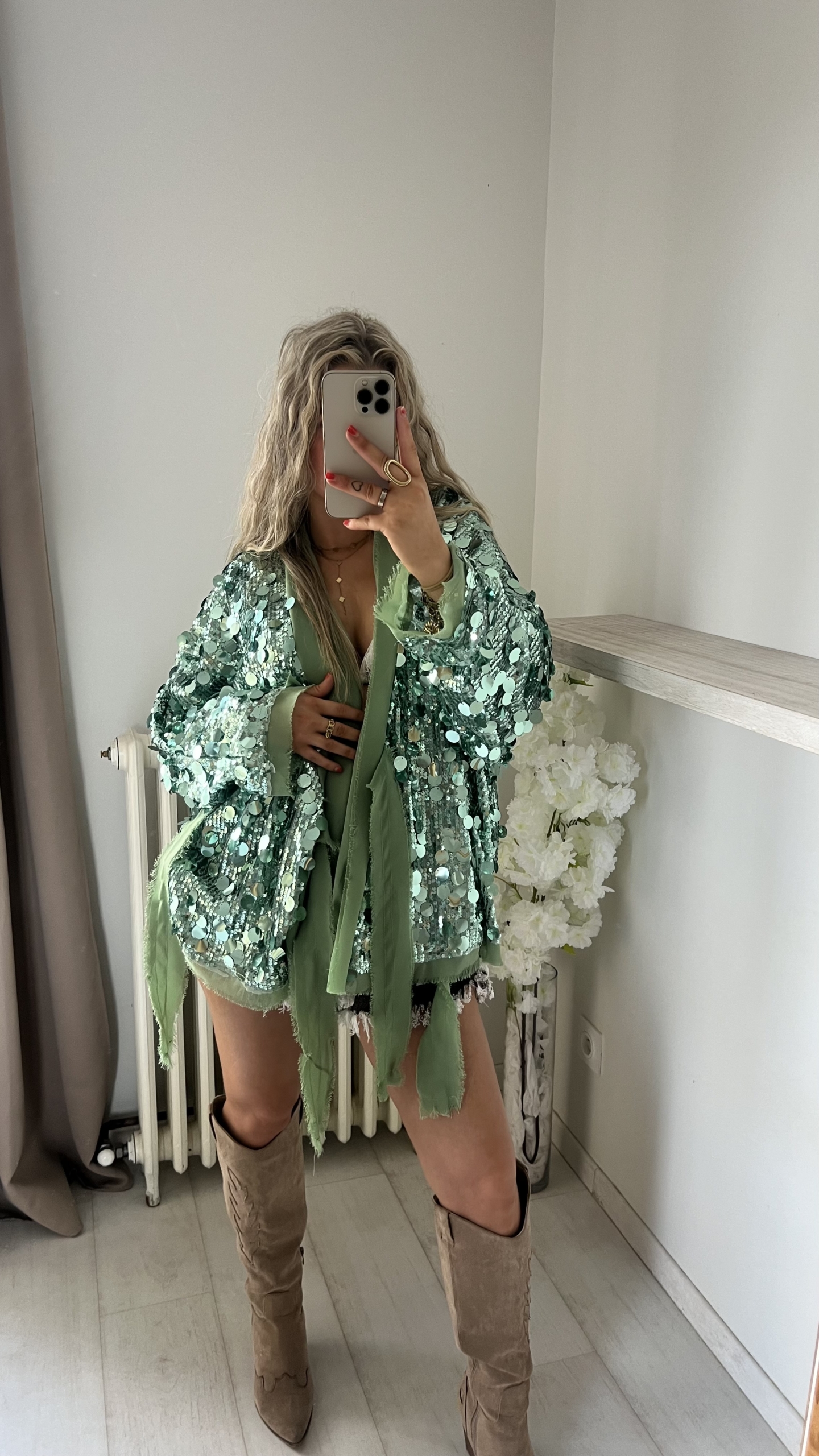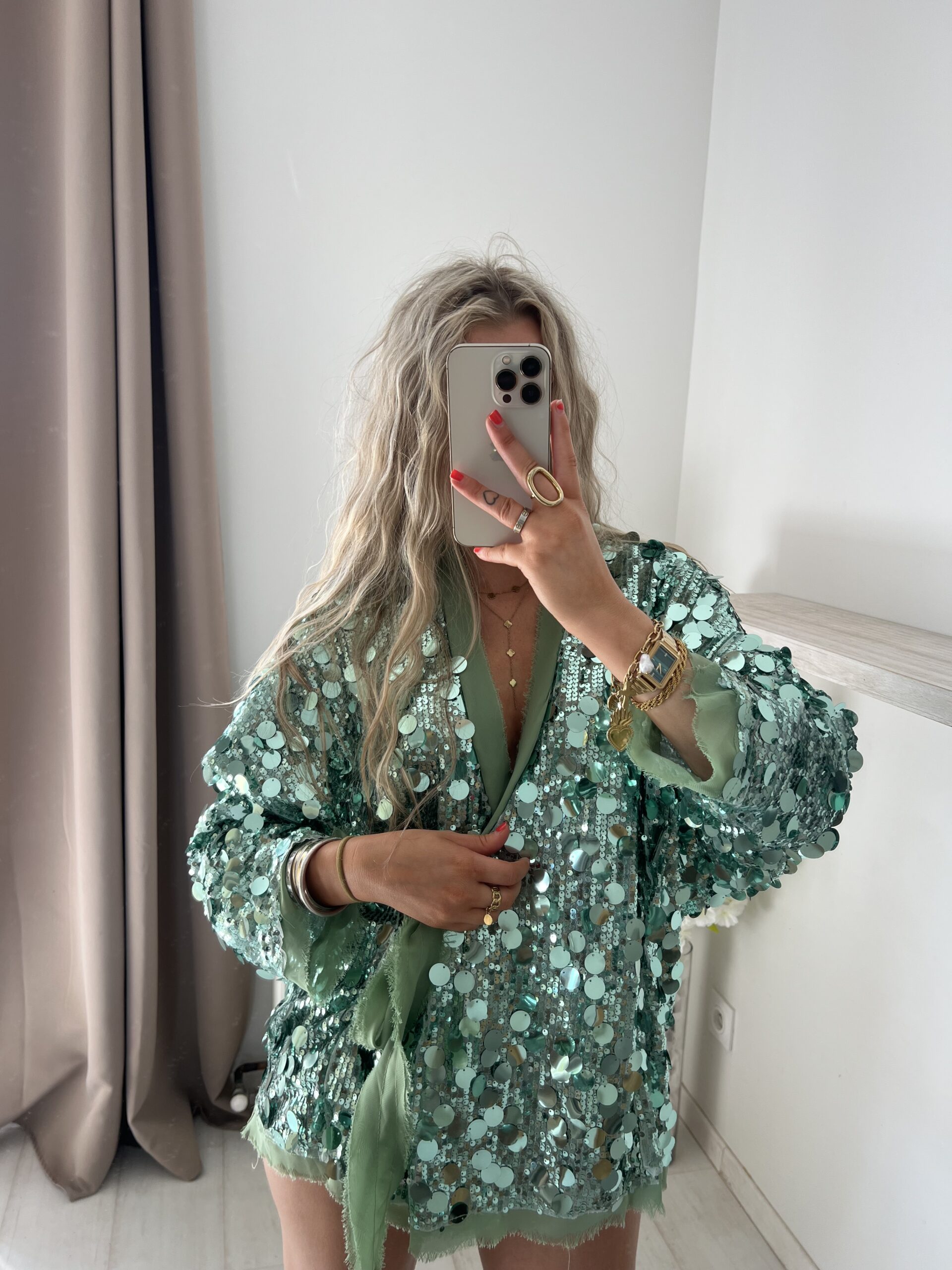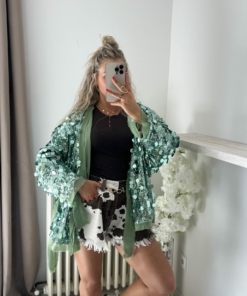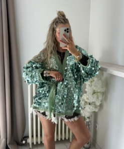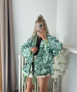 Veste/kimono à sequins vert d’eau