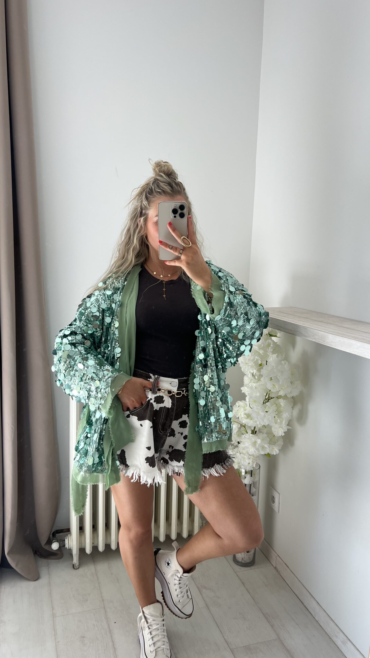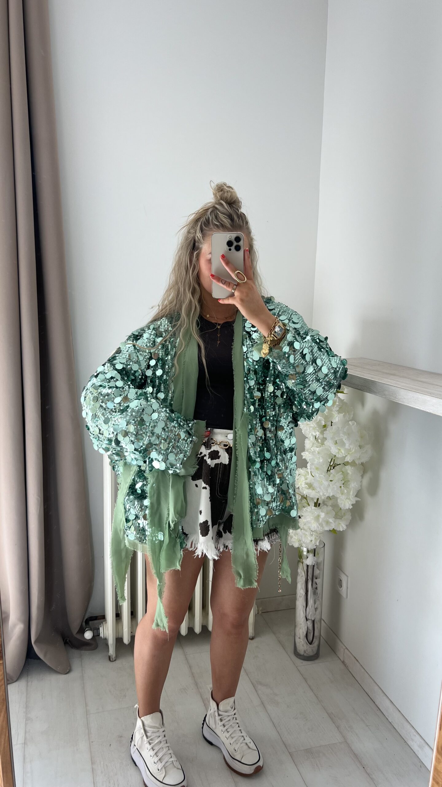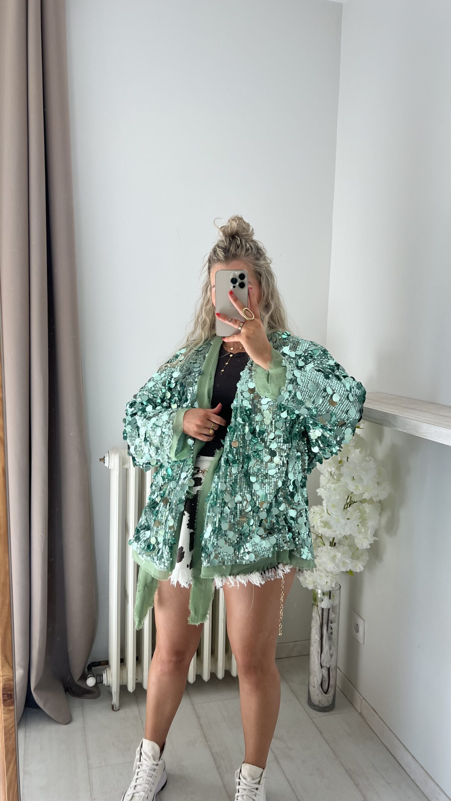 Veste/kimono à sequins vert d’eau